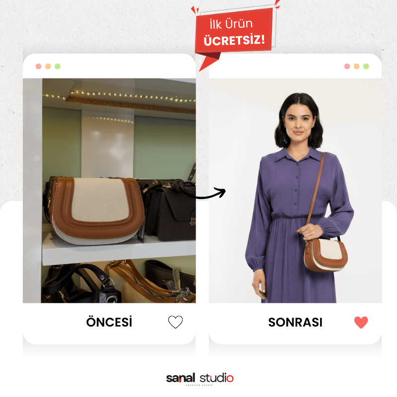 Dijital mankenler üzerinde sergilenen çantalar, günlük veya özel kullanım için en iyi şekilde yansıtılır.